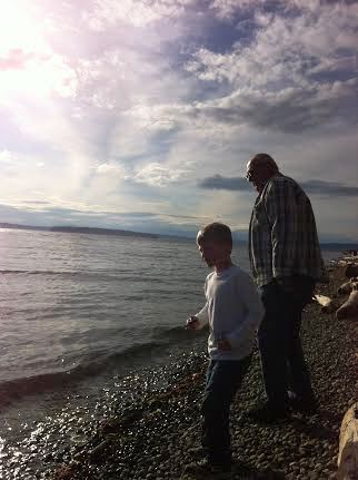 a DAY AT THE BEACH Published April 5, 2014 at 322 × 431 in a DAY AT THE BEACH A day at the “beach” Seattle style. Discussing the fine points of skipping stones with my grandson.
