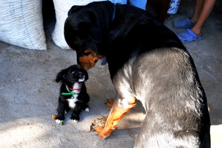 Monkey and our neighbors puppy Published December 8, 2011 at 448 × 300 in Monkey and our neighbors puppy