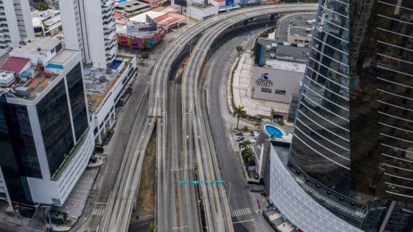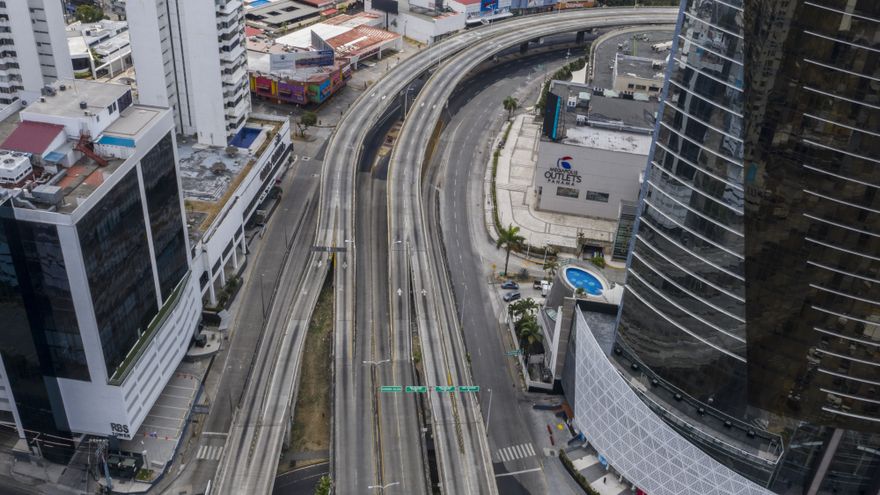 PANAMA-HEALTH-VIRUS Published May 1, 2020 at 880 × 495 in PANAMA-HEALTH-VIRUS Aerial view of an empty highway during the outbreak of the novel coronavirus, COVID-19, in Panama City, on April 05, 2020. (Photo by Luis ACOSTA / AFP)