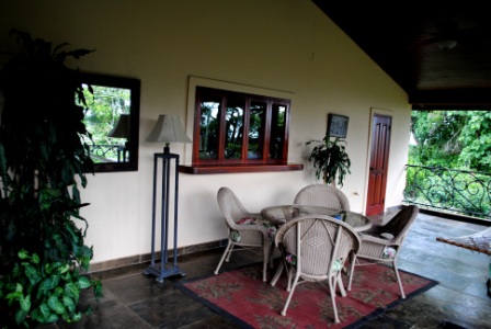 Back porch – powder room door at end. This is a fantastic place for entertaining, especially when the sun is setting over Volcan Baru Kitchen pass through window makes entertaining a breeze.